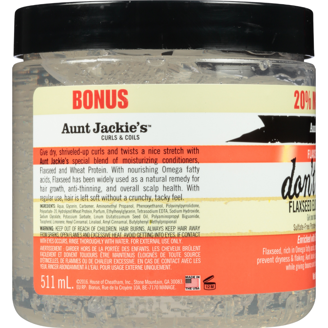 Give dry, shriveled up curls and twists a nice stretch with Aunt Jackie’s special blend of moisturizing conditioners, Flaxseed, Shea Butter and Extra Virgin Olive Oil. With nourishing Omega-3 fatty acids, Flaxseed has been widely used as a natural remedy for hair growth, anti-thinning and overall scalp health. With regular use, hair is left soft without a crunchy, tacky feel.