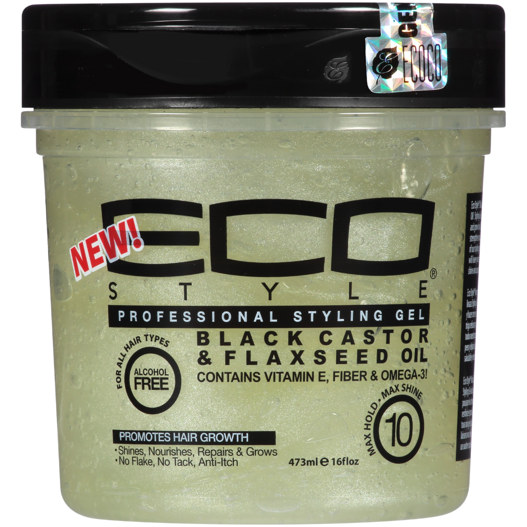 Eco Style Black Castor & Flaxseed Gel helps to nourish, repair and grown hair. Wheat Protein strengthens and protects hair. Like all of our styling gels it is weightless and will leave your hair with a healthy shine and superior hold. Eco Style Black Castor & Flaxseed Oil Gel is a premium hair styling product that combines a mixture of Vitamin E, Fiber, and Omega-3 for the benefits of promoting hair growth. Moisturizes the roots and scalp, and prevents damage to the hair. Alcohol and silicon free. Provides High Hold and High Shine.
