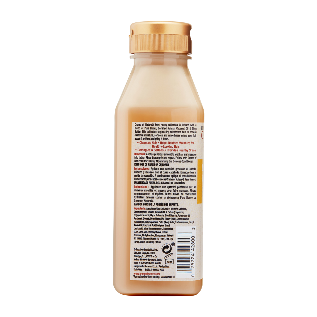 Apply a generous amount to wet hair and massage into lather. Rinse thoroughly and repeat. Follow with Creme of Nature® Pure Honey Moisturizing Dry Defense Conditioner.