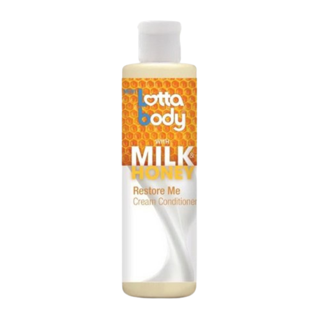 After using Lottabody Milk & Honey Restore Me Cream Shampoo, apply a generous amount of conditioner through hair from ends to roots. Rinse thoroughly after 3 minutes. For deep conditioning, cover hair with plastic cap, and leave on for 10- 15 minutes, then rinse thoroughly with cool water. To moisturize and repair curls, follow with Lottabody Milk & Honey Nourish Me Leave-In Conditioner.