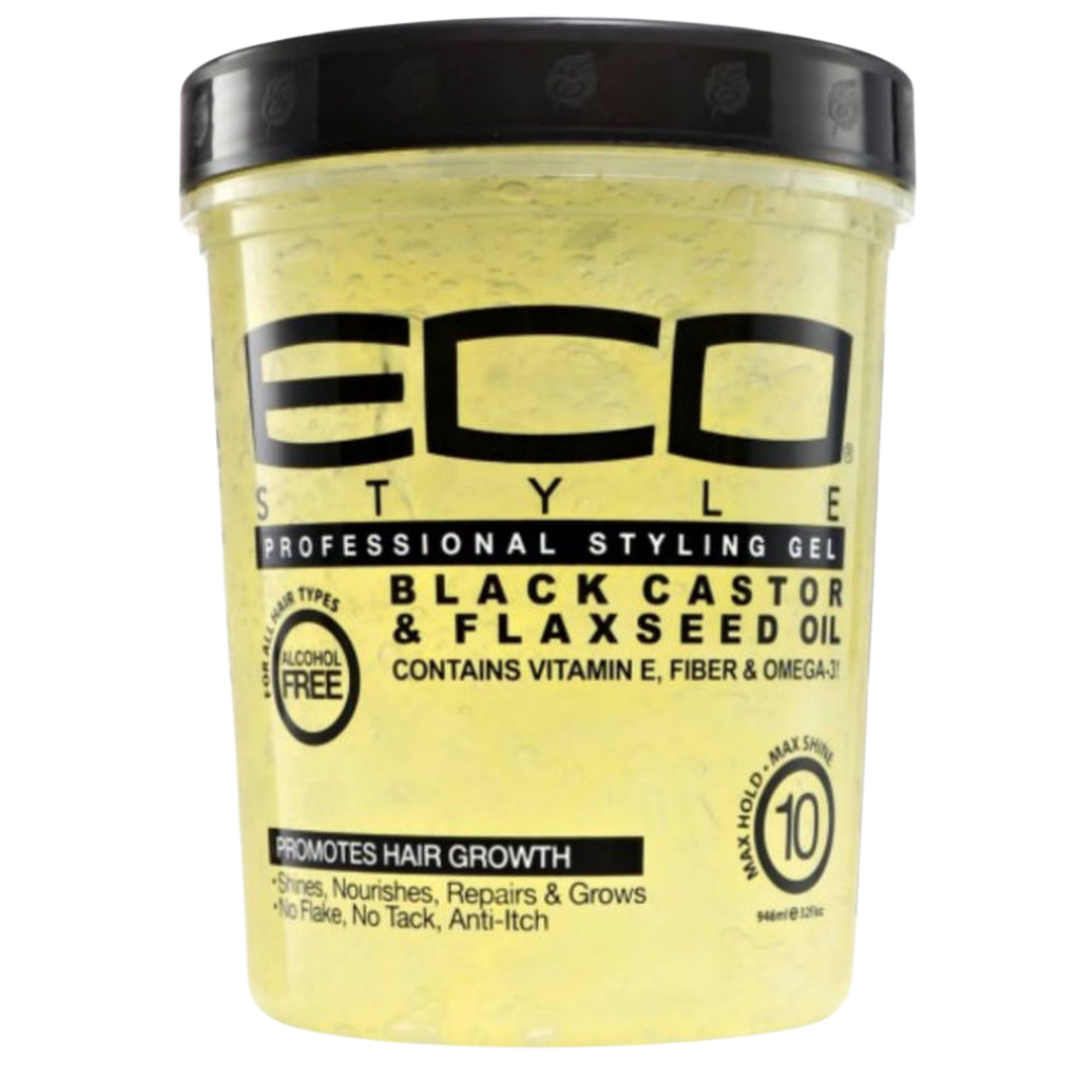 Eco Style Black Castor & Flaxseed Gel helps to nourish, repair and grown hair. Wheat Protein strengthens and protects hair. Like all of our styling gels it is weightless and will leave your hair with a healthy shine and superior hold. Eco Style Black Castor & Flaxseed Oil Gel is a premium hair styling product that combines a mixture of Vitamin E, Fiber, and Omega-3 for the benefits of promoting hair growth. Moisturizes the roots and scalp, and prevents damage to the hair. Alcohol and silicon free. Provides High Hold and High Shine.